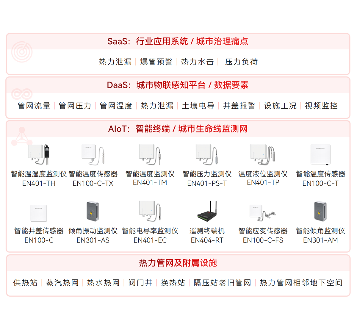 對供熱管網的蒸汽管道排潮孔溫度、疏水箱壓力,熱水管網土壤溫度,管網流量、壓力,井蓋異動等指標進行實時監測,構建供熱管網綜合管理的動態監測網絡,保證整個城市供熱穩定安全運行。